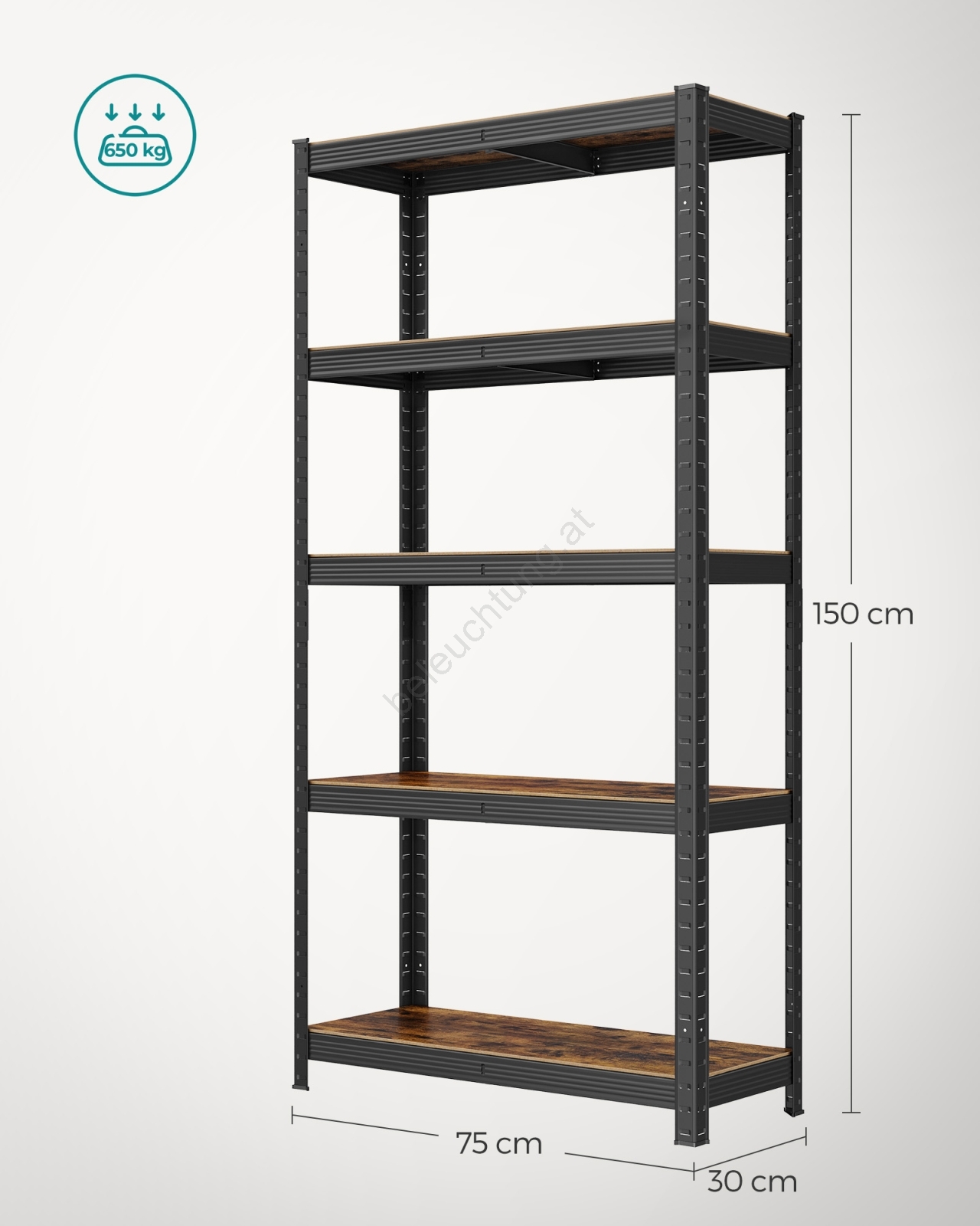• Jeder Regalboden trägt bis zu 130 kg und eignet sich sicher zur Lagerung von Farben, Werkzeug und Fitnessgeräten.