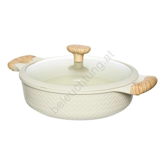 • Mit einem Durchmesser von 28 cm und einem Fassungsvermögen von 4,1 l bietet er die ideale Kapazität für Familiengerichte, wobei das gegossene Aluminium einen schnellen Wärmetransfer und stabile Leistung auf allen Herdarten gewährleistet.