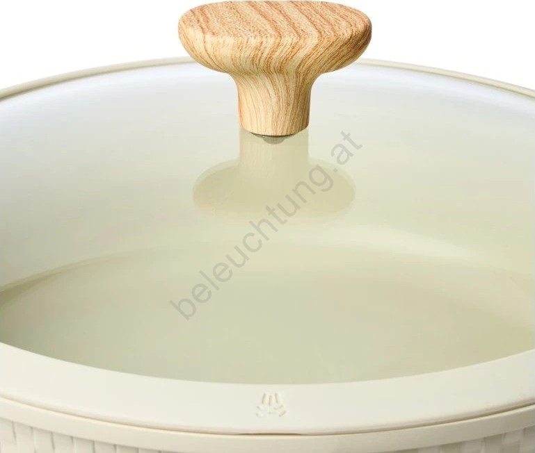 • Im Lieferumfang enthalten ist ein robuster Glasdeckel mit Silikonrand und Dampfablassöffnung, der die Wärme effektiv im Topf hält und zugleich die Kontrolle des Garvorgangs ermöglicht.