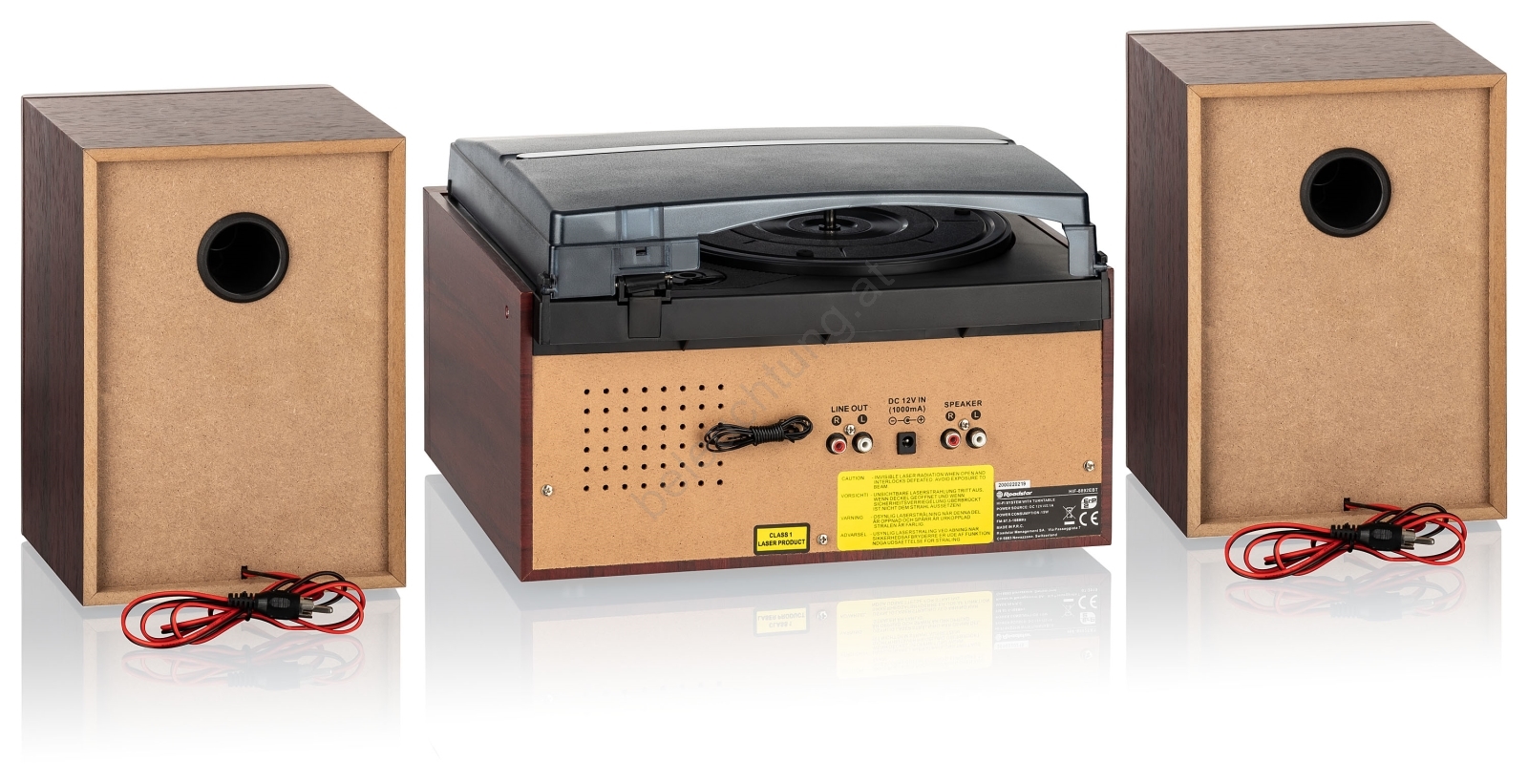 • Hochwertiger Plattenspieler mit 33, 45 und 78 U/min, Auto-Stop- und Auto-Return-Funktion.