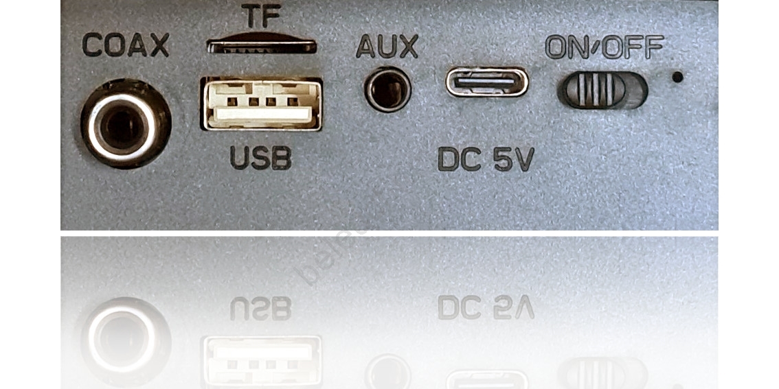 • Audioeingänge: 3,5-mm-Klinke (AUX) und RCA-koaxialer Eingang zur Verbindung mit TV oder PC.