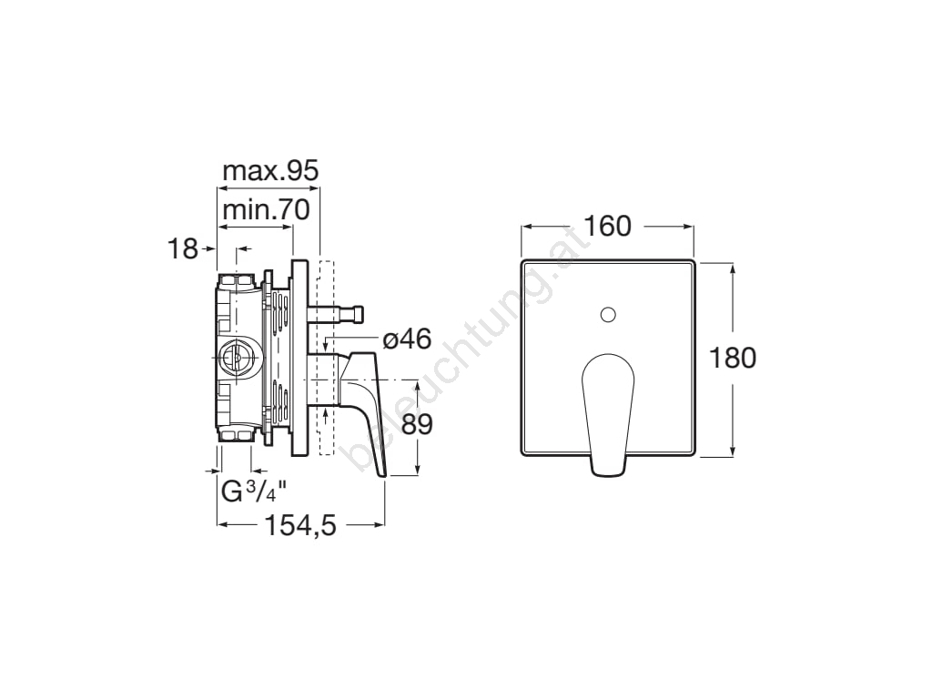• Wand-Duscharmatur zur Unterputzmontage.