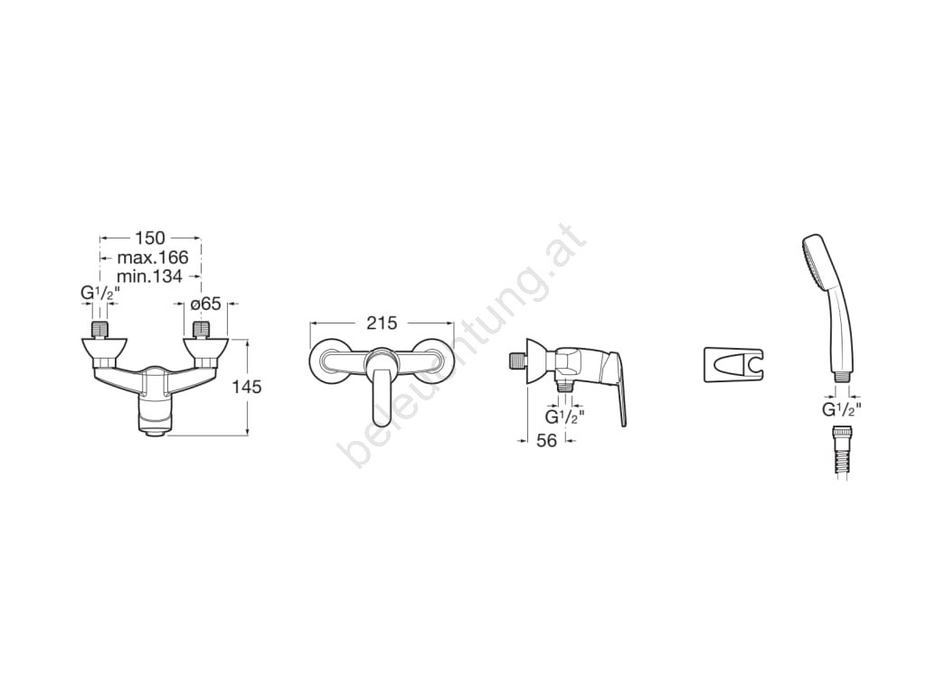 • Lieferumfang: Duscharmatur, Handbrause, flexibler Schlauch 1,5 m, Wandhalter.
