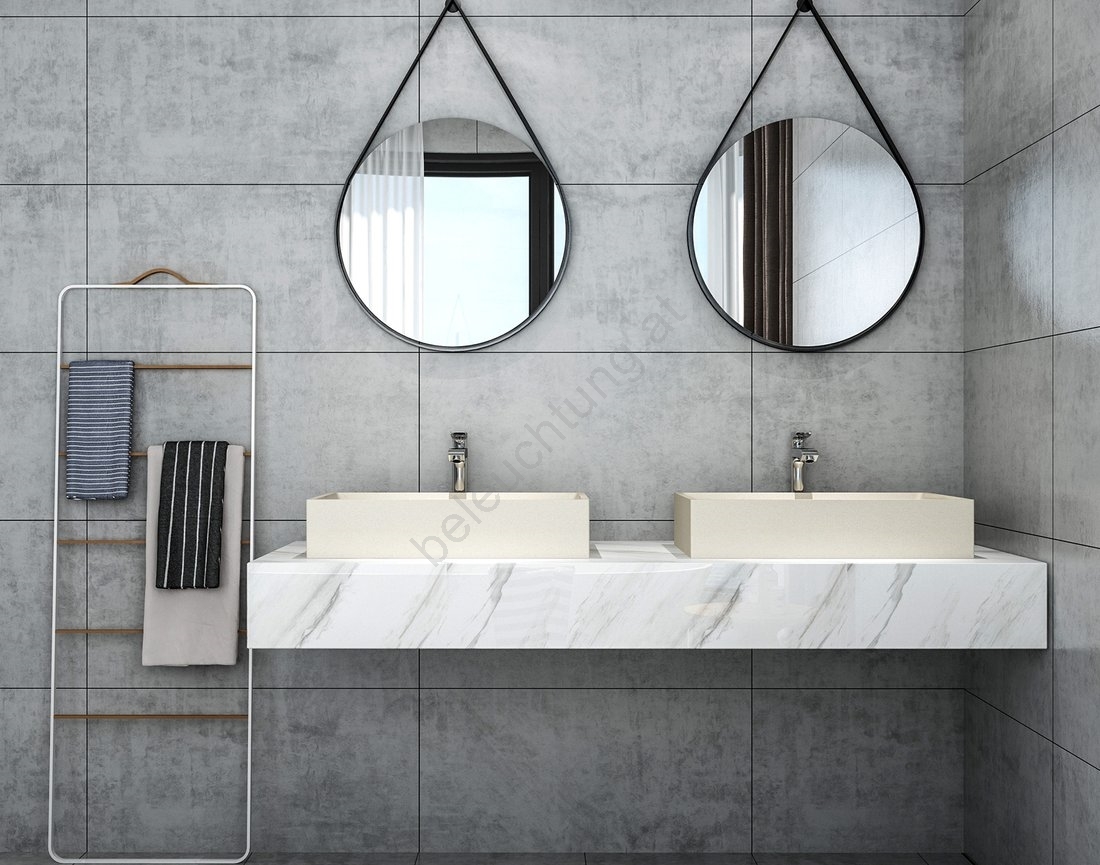 • Im Lieferumfang enthalten ist ein Click-Clack-Ablauf mit Betonstopfen in der Farbe des Waschbeckens.