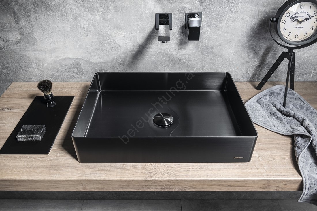 • Das Waschbecken ist ohne Hahnloch für die Armatur und verfügt über eine hochwertige PVD-Oberflächenbeschichtung.