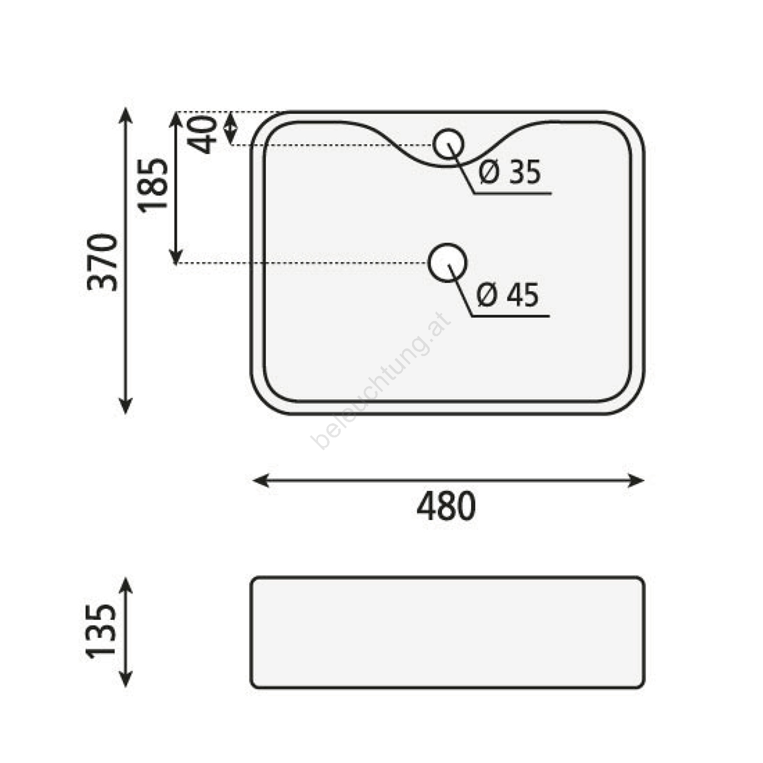 • Das Aufsatzwaschbecken ist für die Montage auf einer Waschtischplatte vorgesehen.