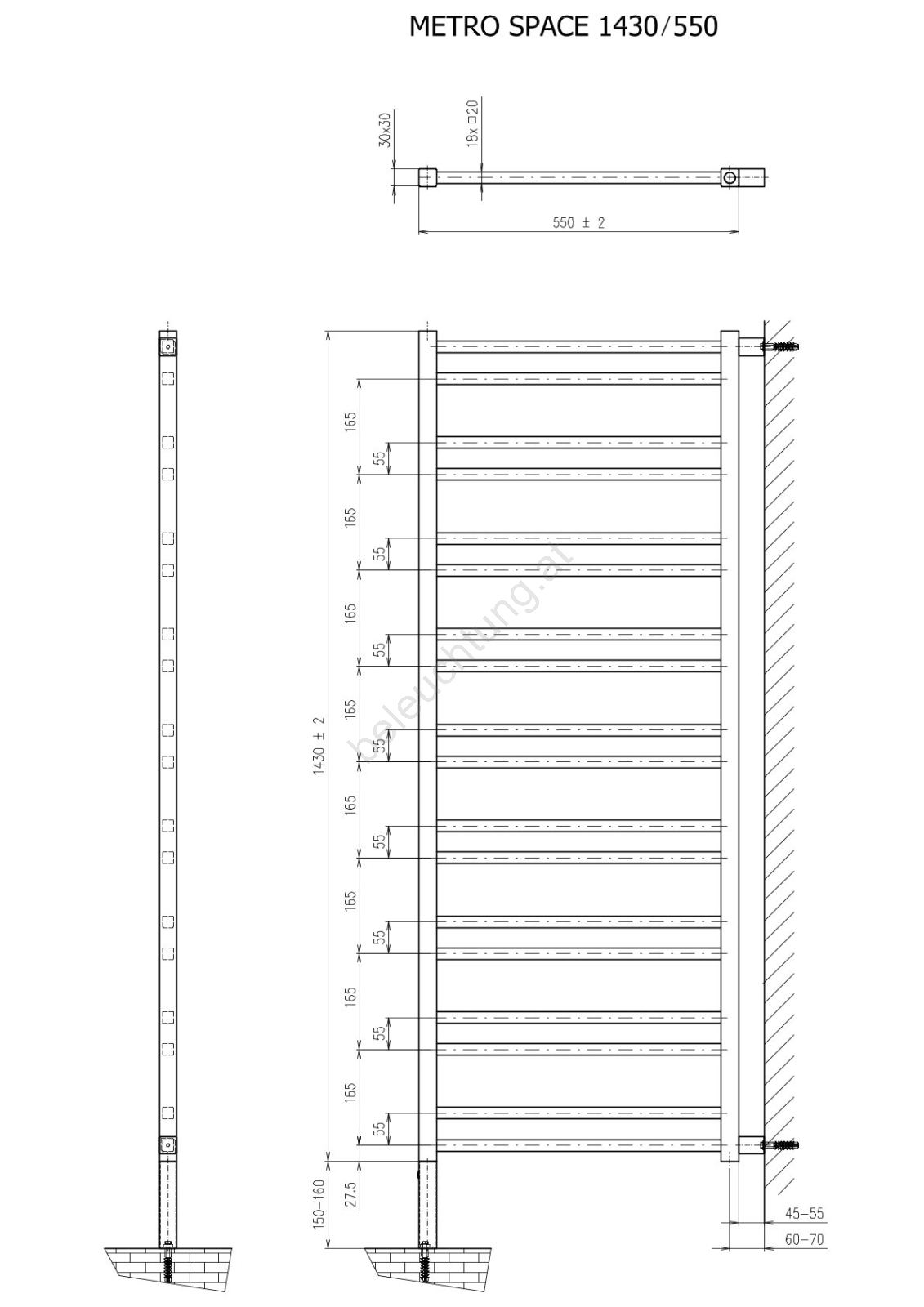 Sapho - Badheizkörper METRO SPACE 525W/230V 55x143 cm matt schwarz