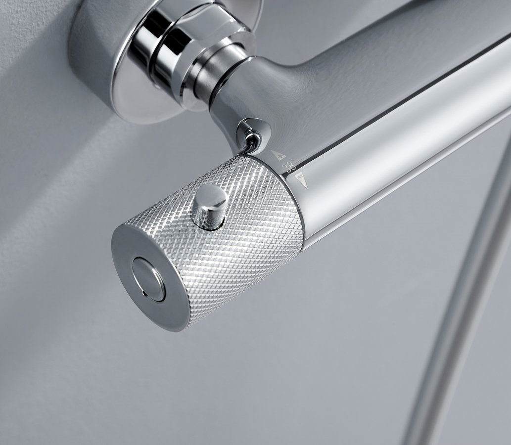 • Die Armatur besticht durch schlanke Linien und industrielle Details.