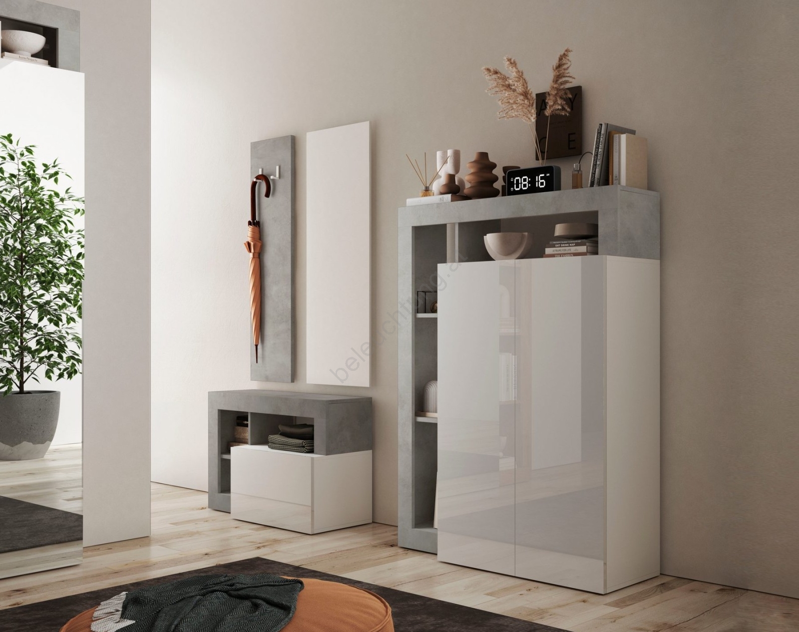 Schrank LENOR weiß/grau Betonoptik