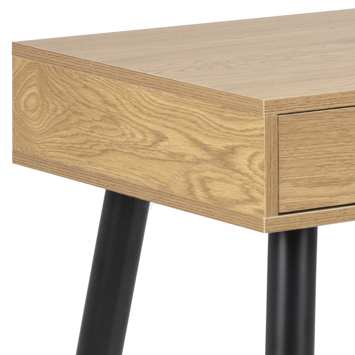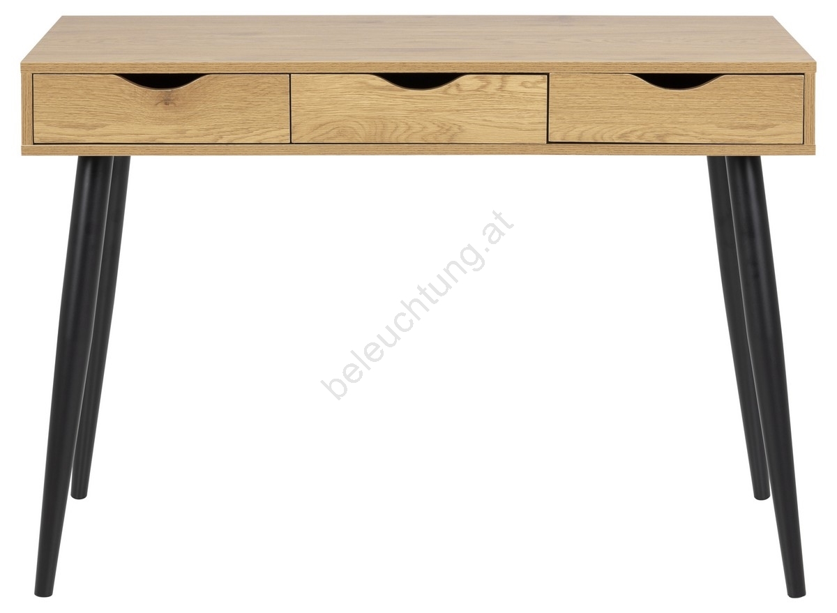• Die Tischplatte und 3 Schubladen sind mit mattem Craft-Dekor versehen, das Gestell besteht aus mattschwarzem, grob pulverbeschichtetem Stahl mit Metallführungen.