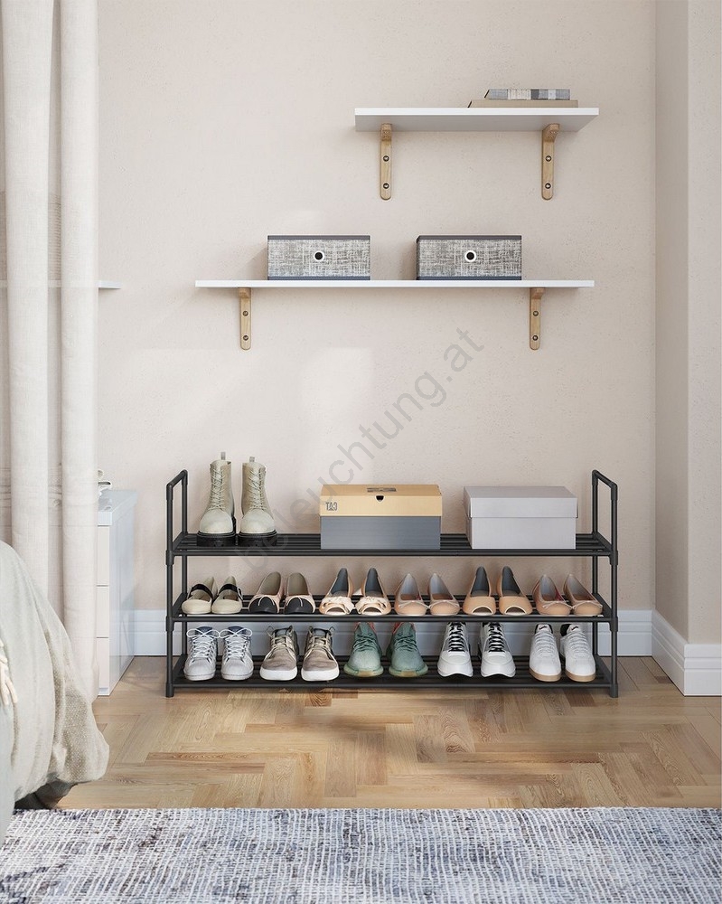 • Dank seiner schlanken Form nimmt dieses 3-stöckige Schuhregal nur wenig Platz am Boden ein und bietet dennoch ausreichend Stauraum für 15 Paar Schuhe.