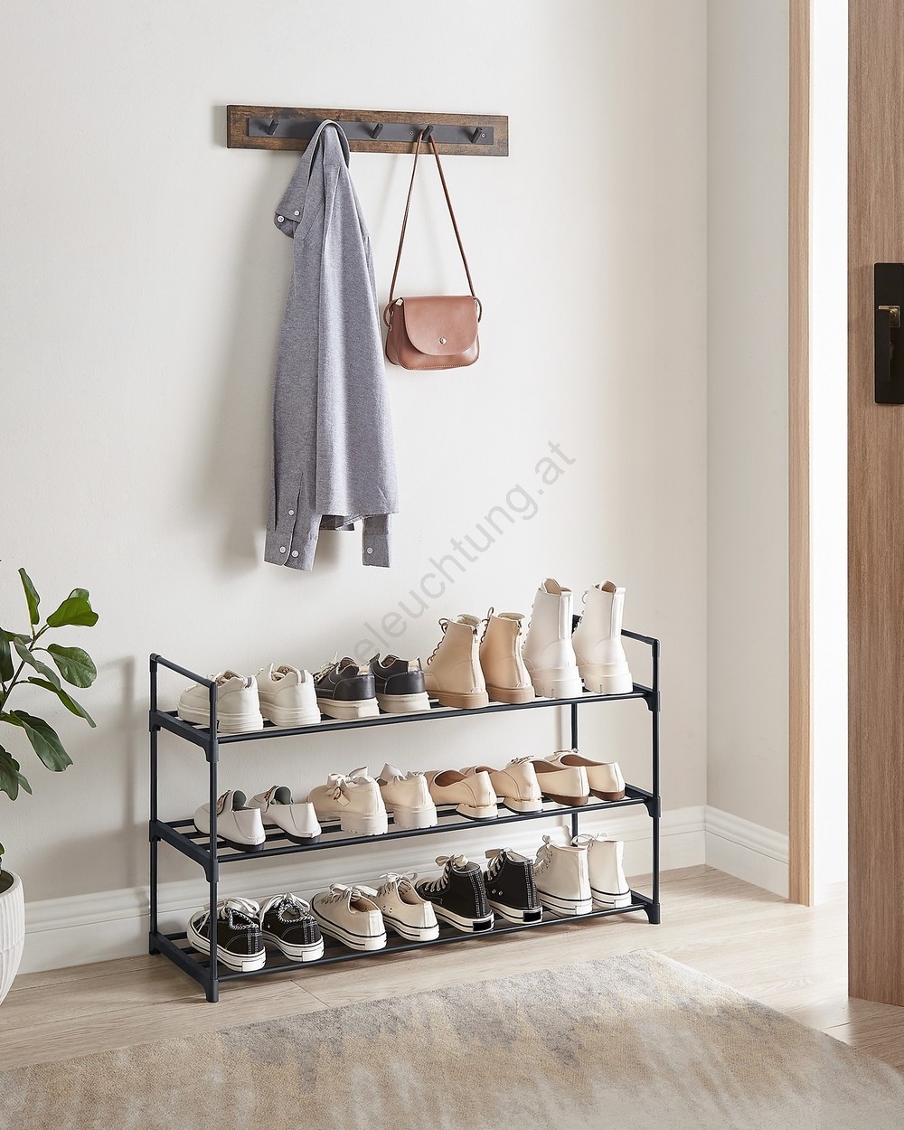 • Dank seiner schlanken Form nimmt dieses 3-stöckige Schuhregal wenig Stellfläche ein und bietet dennoch ausreichend Stauraum für 12 Paar Schuhe.