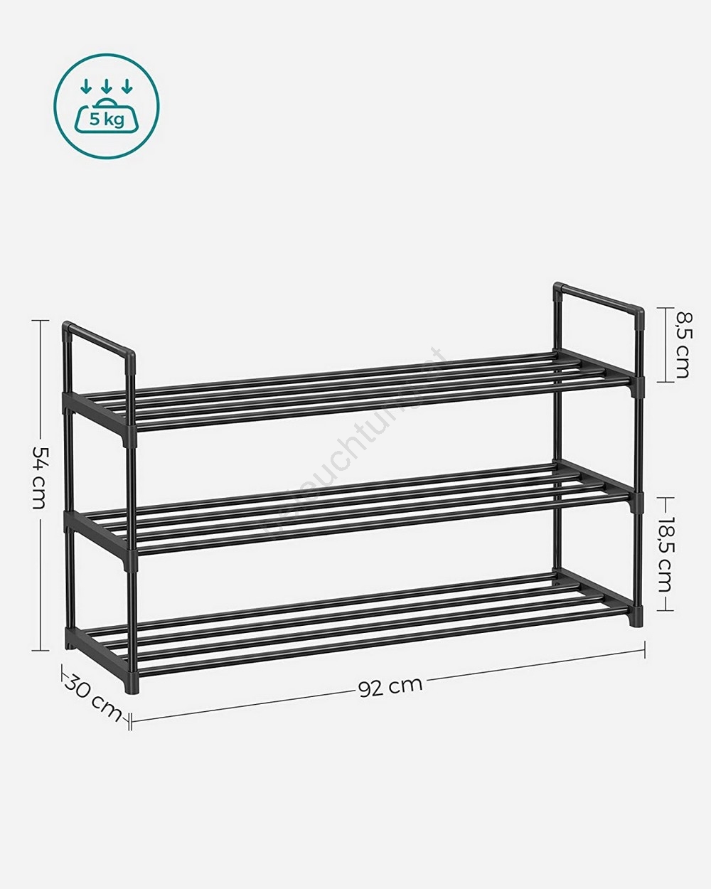 • Jede Ebene kann bis zu 5 kg tragen und bietet so stabilen Halt für Ihre Schuhe.