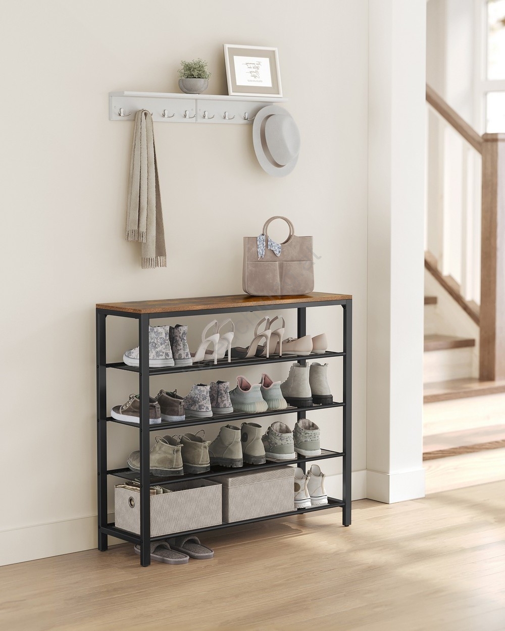 • Dank seiner schlanken Form nimmt dieses 5-stöckige Schuhregal nur wenig Platz am Boden ein und bietet dennoch reichlich Stauraum.
