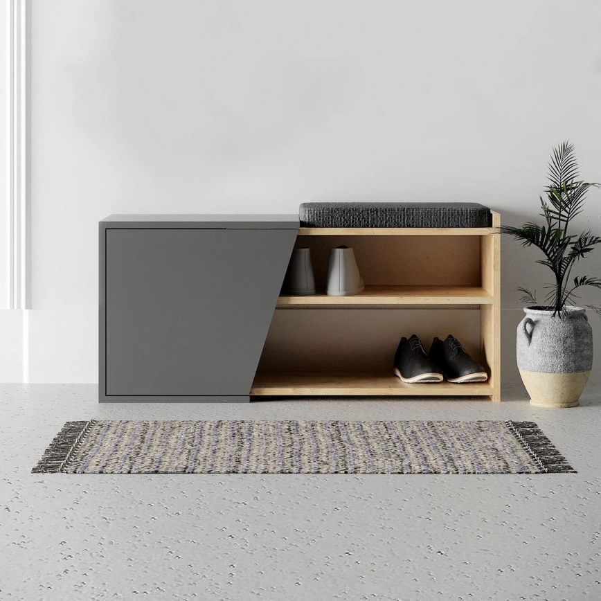 • Schuhregal mit bequemem gepolstertem Sitzkissen.