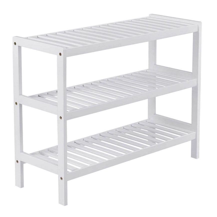 • Dank seiner schlanken Form nimmt dieses dreistöckige Schuhregal wenig Platz am Boden ein und bietet dennoch reichlich Stauraum.