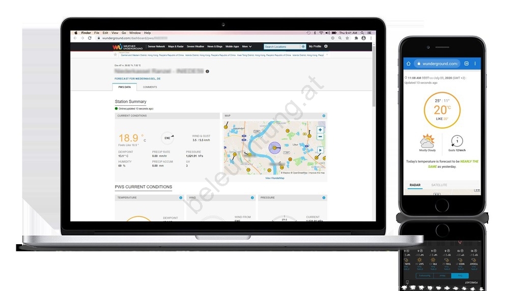 • Unterstützt intelligente Geräte, Online-Zugriff auf Historie, Daten und globale öffentliche Wetterplattformen „Weather Underground" und „Weathercloud".
