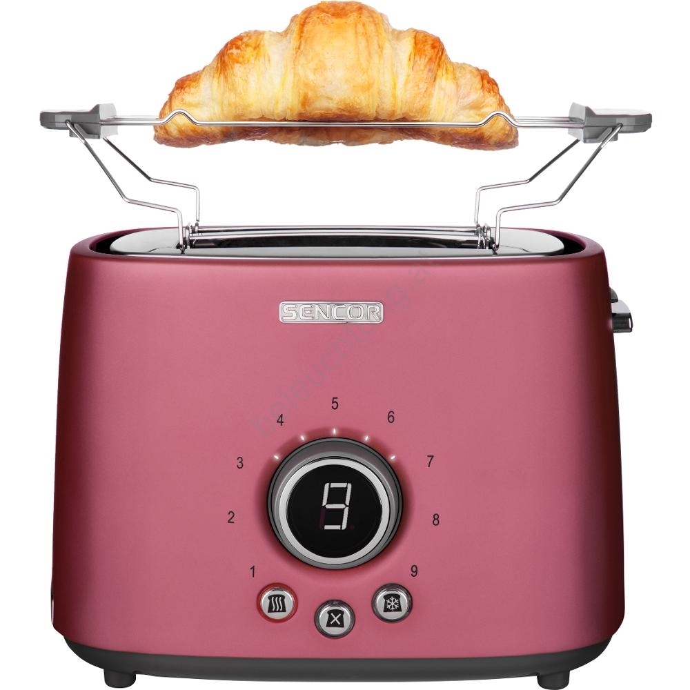 Sencor - Toaster mit zwei Schlitzen und Aufbackrost, 1000 W/230 V, rosa