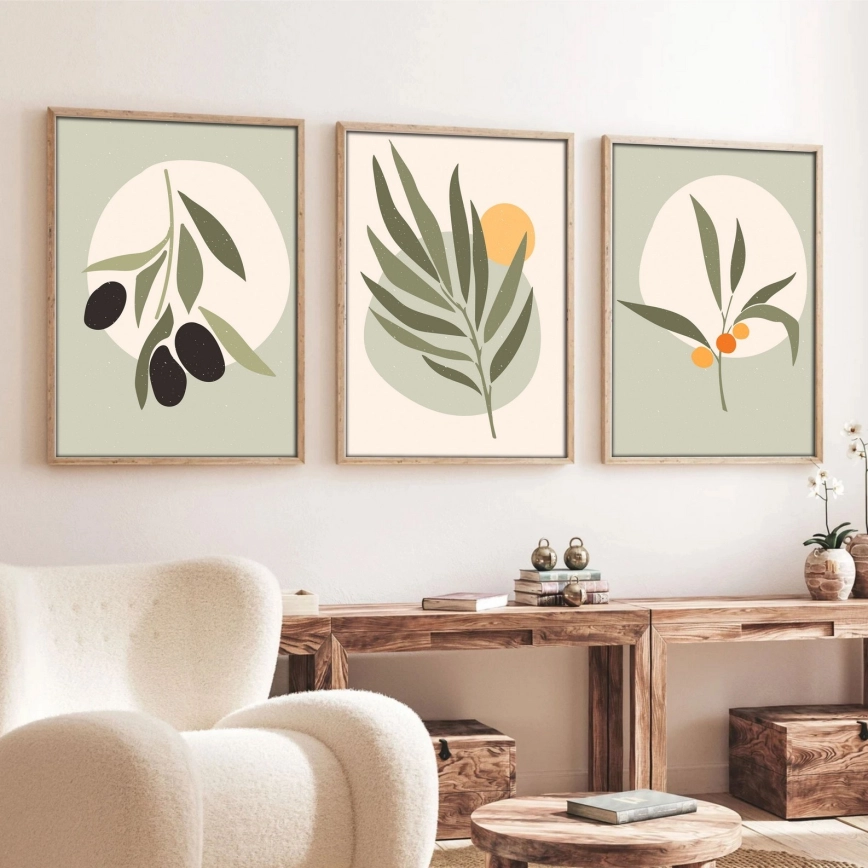 SET 3x Bild im Fotorahmen 50x70 cm Blätter