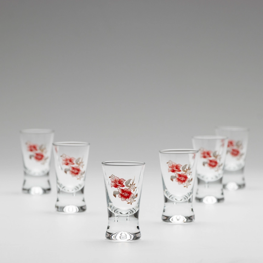 • Set von Gläsern für Schnaps in klarer Farbe mit Blumenmotiv.