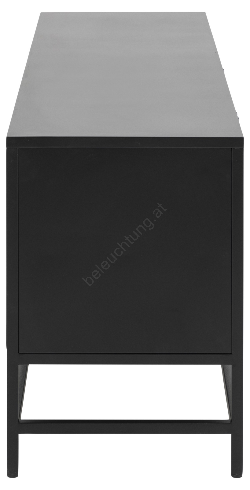 • Oberplatte, Rahmen, 3 Türen, 2 Regale und Sockel aus matt schwarzem, grob pulverbeschichtetem Stahl.