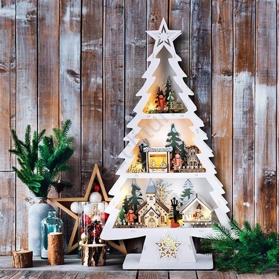 LED-Weihnachtsdekoration, 13 LEDs, 2×AA, Holz-Tannenbaum