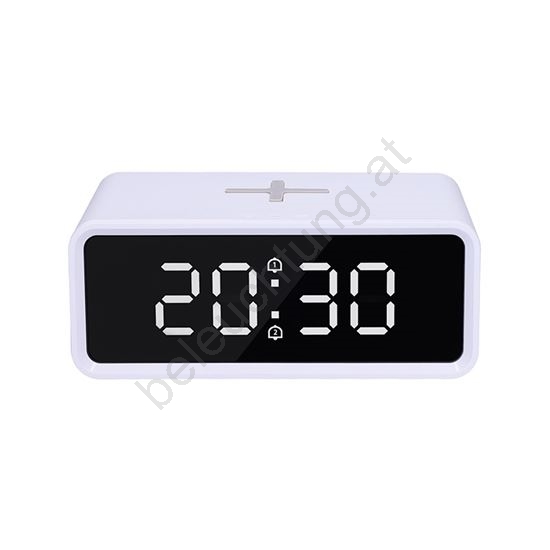 Digitaluhr mit kabelloser Qi-Ladefunktion 230V/CR2032 weiß