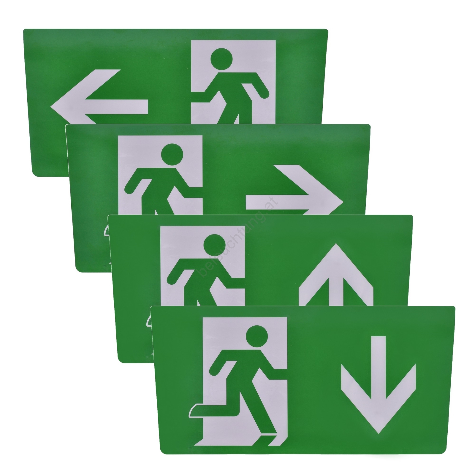 • Deckenschild für Notbeleuchtung, zur Kennzeichnung von Fluchtwegen in öffentlichen oder gewerblichen Bereichen.