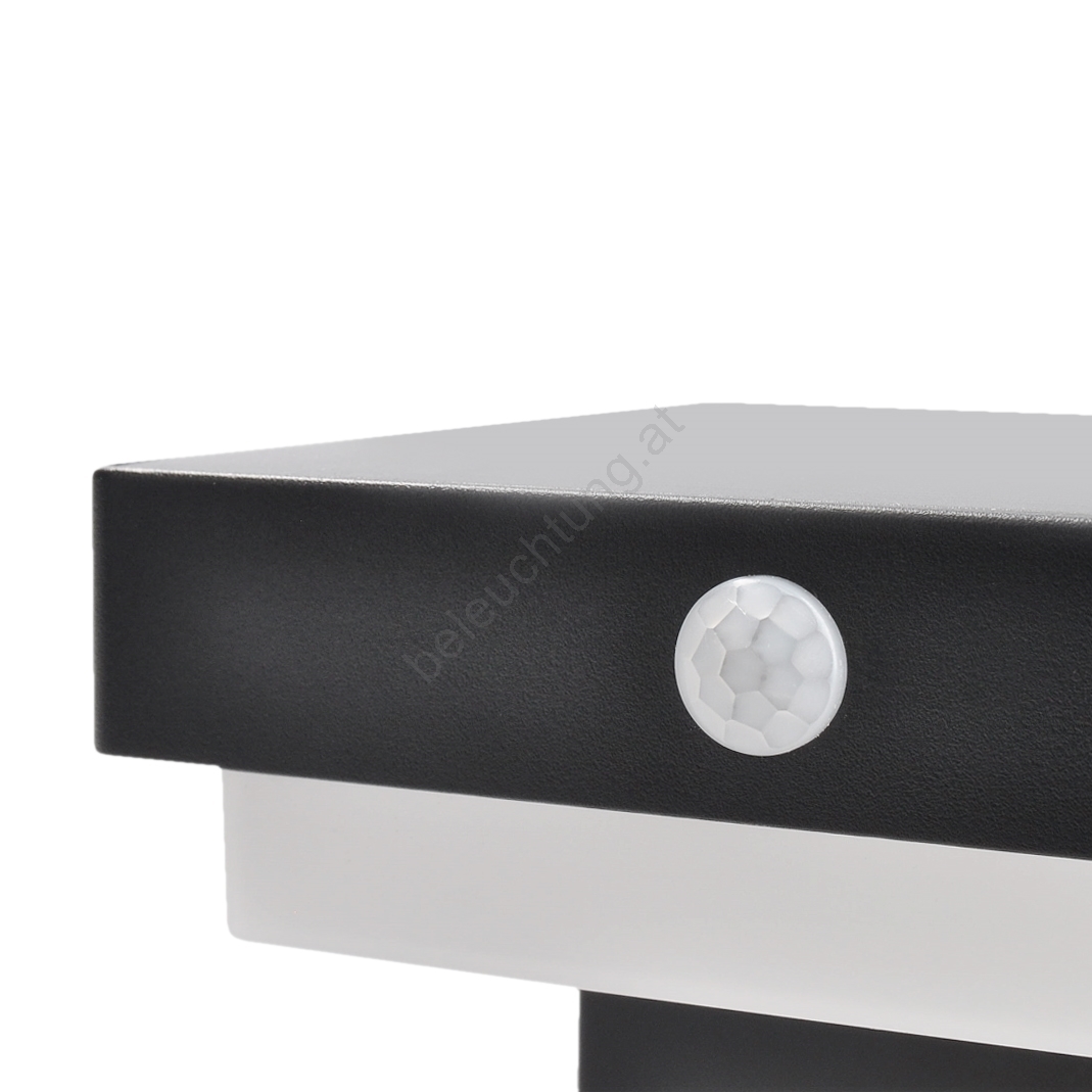 • Außenwandleuchte mit LED, Solarpanel, Bewegungs- und Dämmerungssensor.