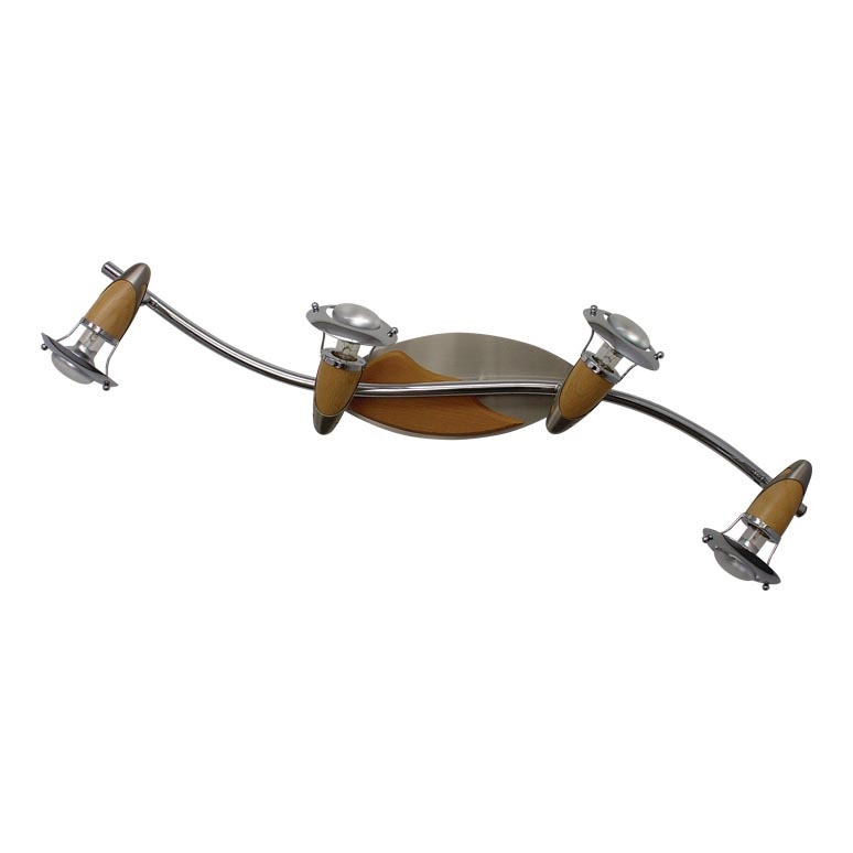 Die Leuchte ZEUS verfügt über eine chromglänzende und mattchromierte Oberfläche in Kombination mit hellem Holz. Dadurch eignet sich die Beleuchtung für jeden Innenraum, beispielsweise für das Wohnzimmer, Schlafzimmer, die Küche, das Salon oder das Arbeitszimmer. Die Höhe der Leuchte beträgt 130 mm und die Breite 830 mm. Für eine perfekte Innenraumbeleuchtung sorgen vier Glühbirnen, die jedoch nicht im Lieferumfang enthalten sind.