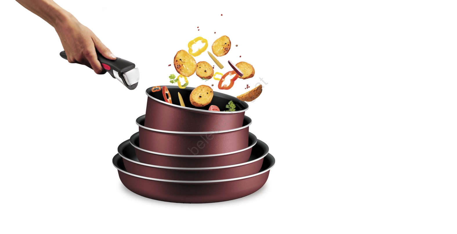 • 6-teiliges Topf- und Pfannenset Tefal Ingenio Simply Cook im eleganten roten (weinroten) Design.