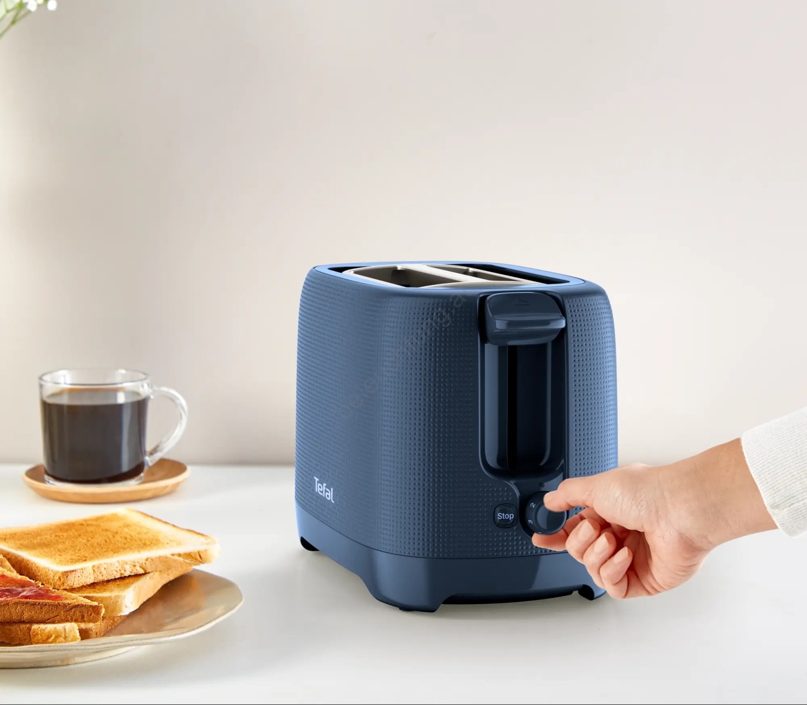 • Der Tefal Morning Toaster verfügt über 7 Bräunungsstufen und 2 extra breite Schlitze, die sowohl dickere als auch dünnere Toastscheiben aufnehmen.
