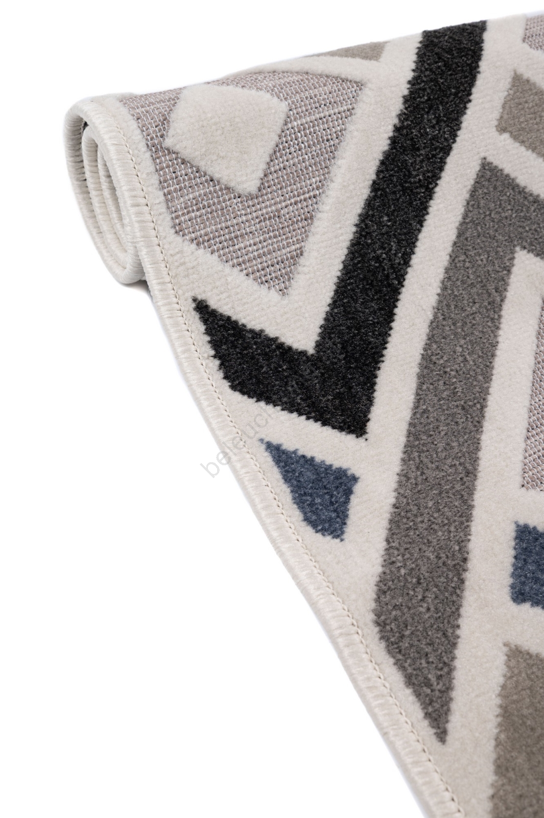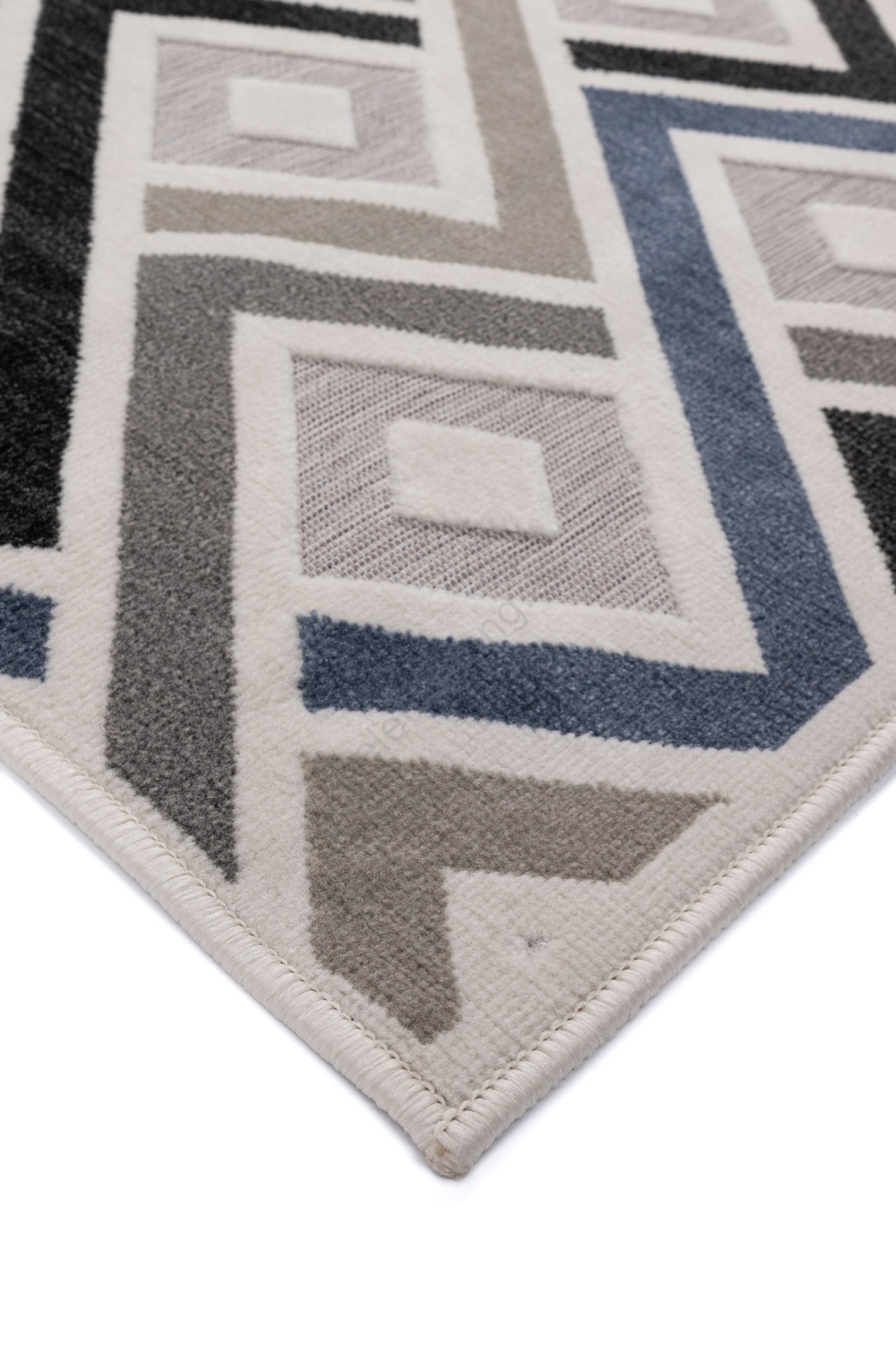 • Der Flor zeigt ein modernes geometrisches Muster und variierende Florhöhen, die dem Teppich einen 3D‑Effekt verleihen.