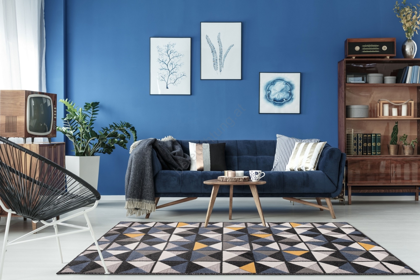 • Der Flor weist ein modernes geometrisches Muster und unterschiedliche Florhöhen auf, was dem Teppich einen 3D-Effekt verleiht.