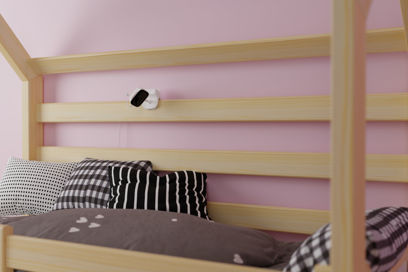 • Die Kamera ist zudem mit einem Clip und einem flexiblen Gelenk ausgestattet, sodass sie an Bettchen oder Regalen befestigt werden kann.