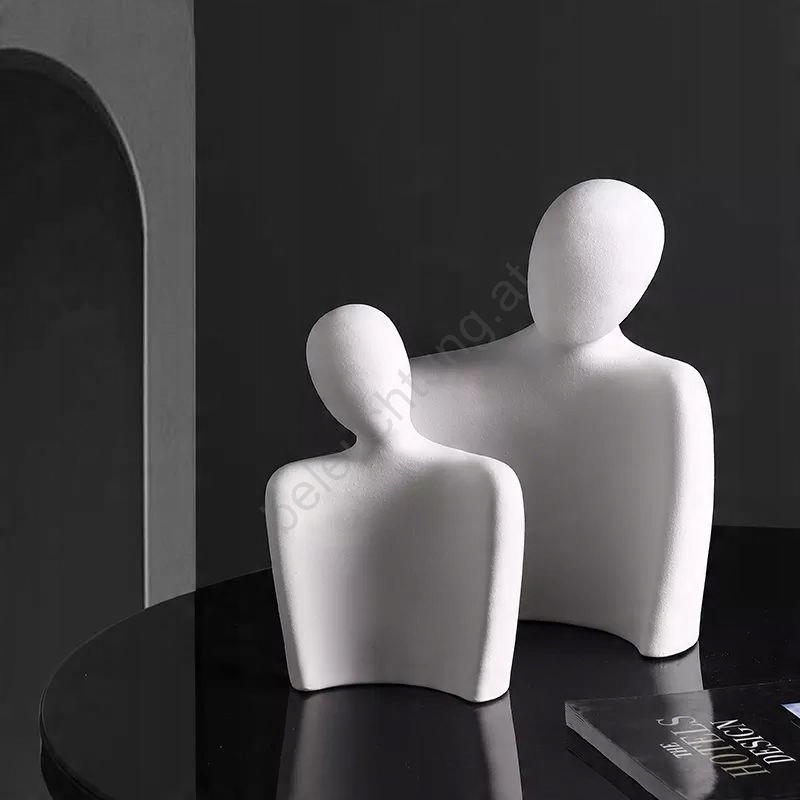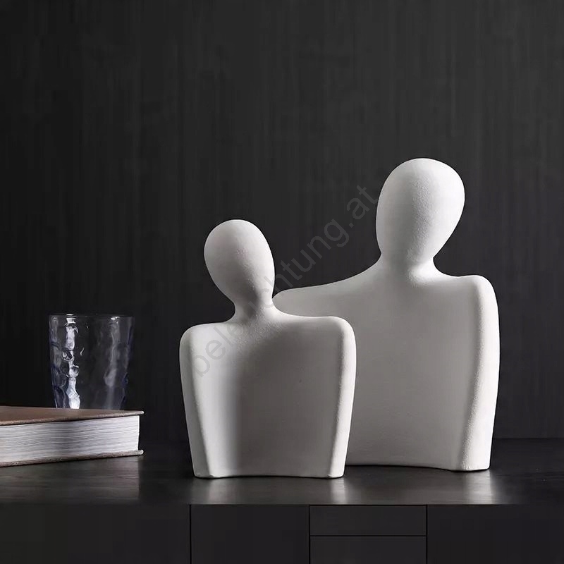 • Elegante, minimalistische weiße Dekoration mit zwei Figuren.