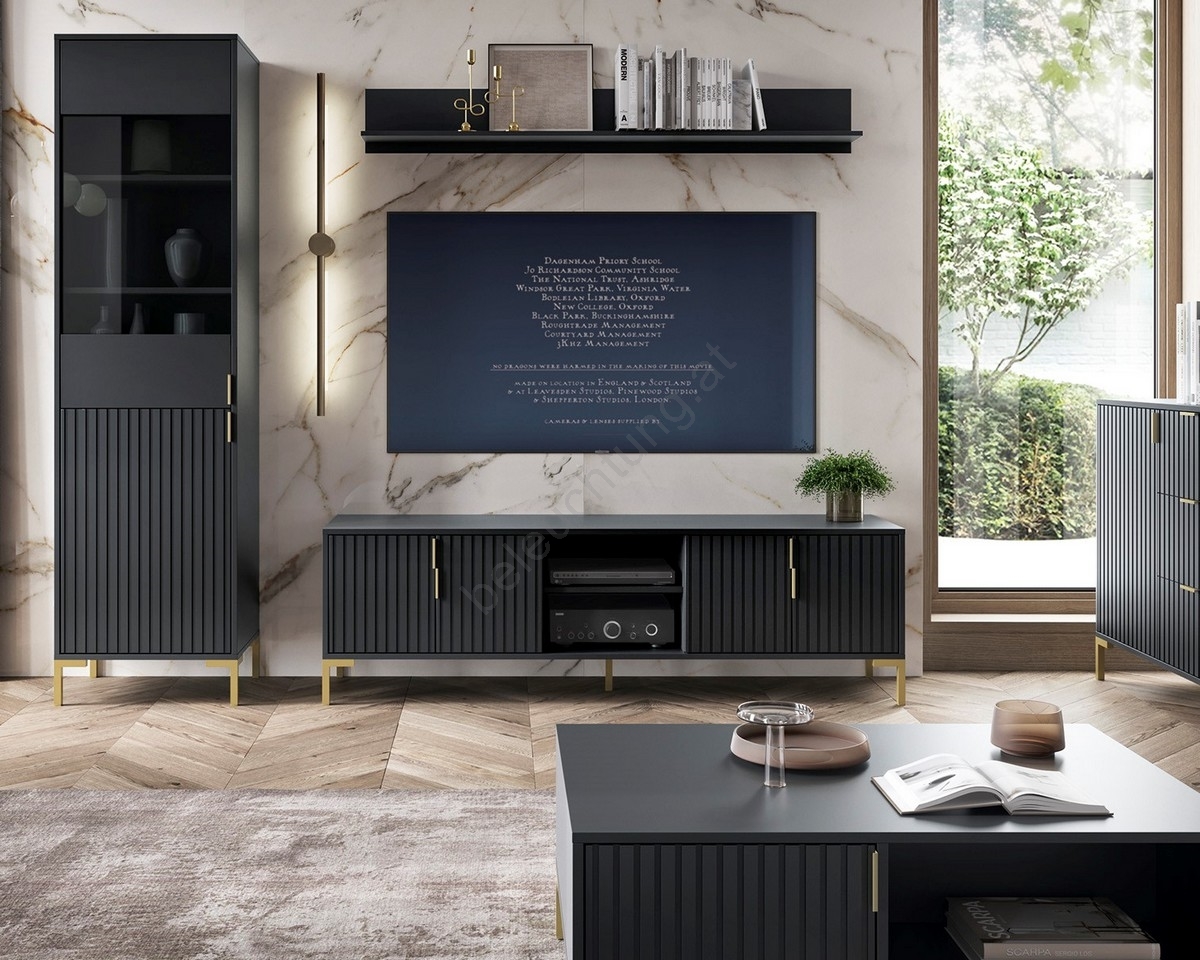 • Dank seiner langen, rechteckigen Form ist er ideal zur Platzierung unter einem an der Wand montierten Fernseher oder als modernes Aufbewahrungssystem im Wohnzimmer.