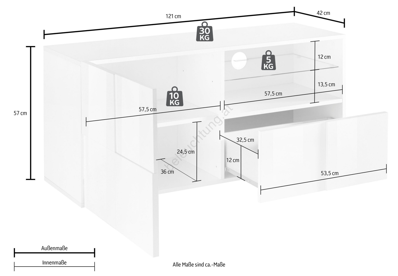 • Dank seiner langen, rechteckigen Form ist es ideal zur Platzierung unter einem an der Wand montierten Fernseher oder als modernes Aufbewahrungsmöbel im Wohnzimmer.