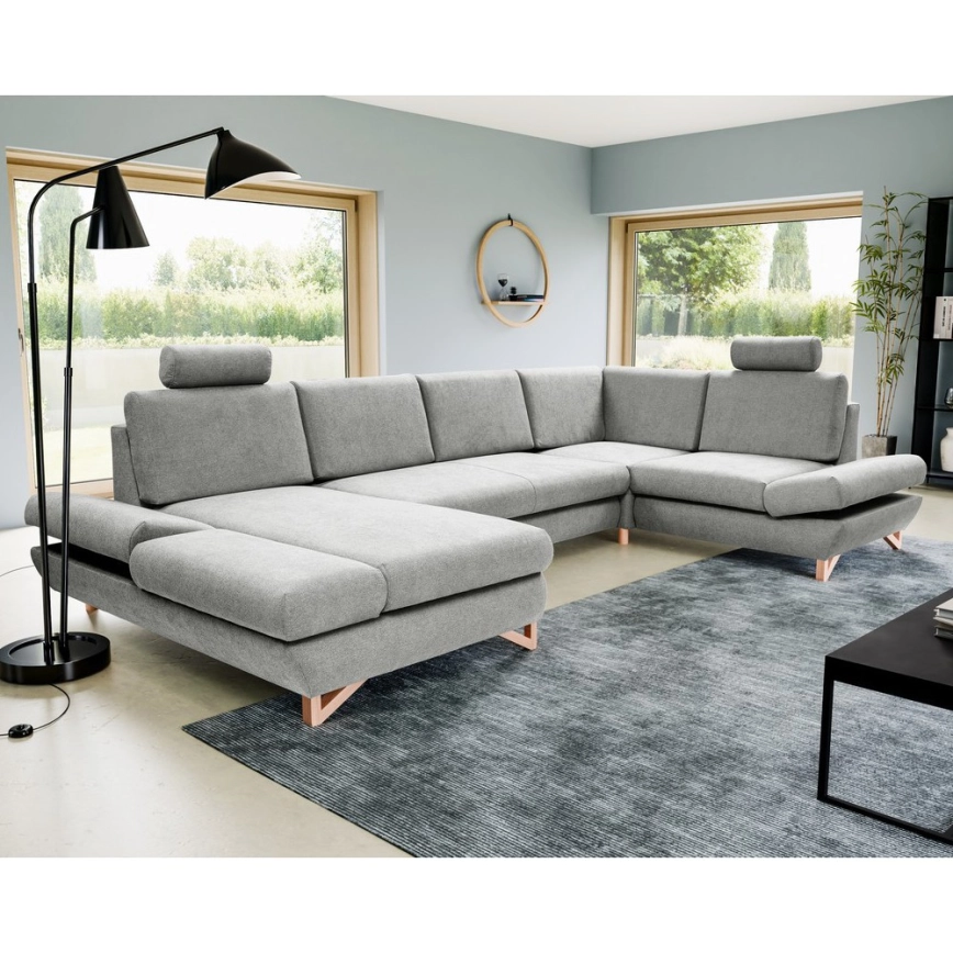 • Ausziehbare, gepolsterte Eckgarnitur in U-Form mit Stauraum AVESTA, grau