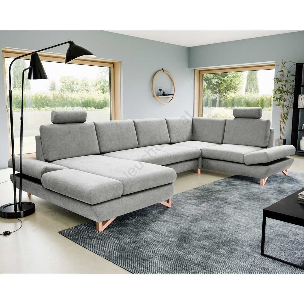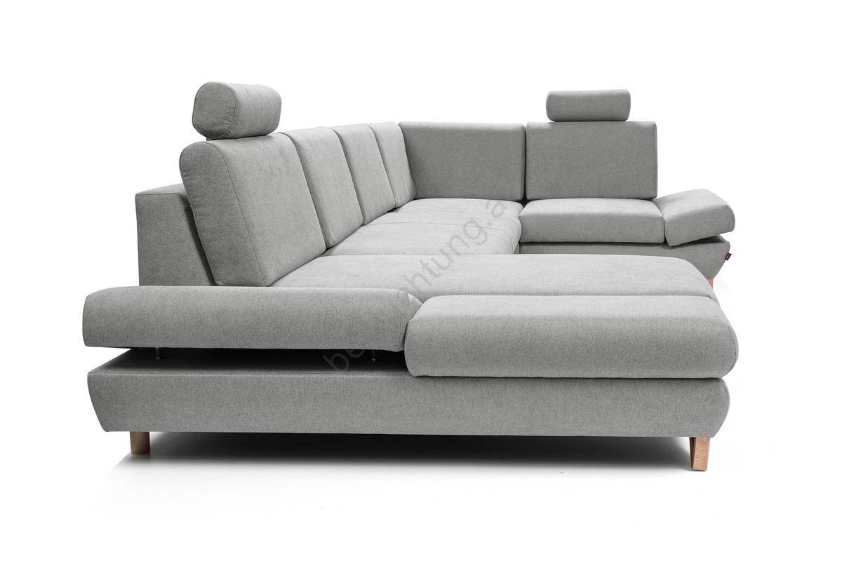 • U-förmige, ausklappbare Polstergarnitur mit Stauraum AVESTA, grau