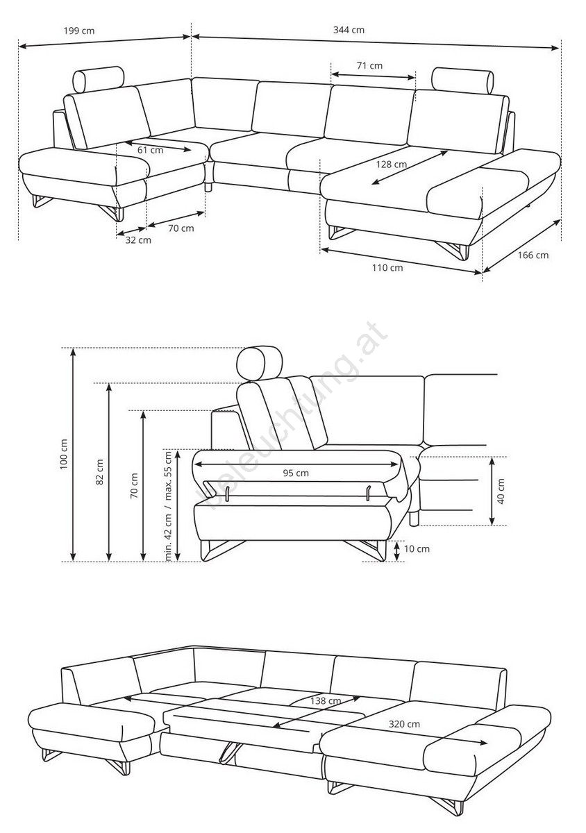 • Sitztiefe 57 cm bietet ausreichend Platz für entspanntes und ergonomisches Sitzen.
