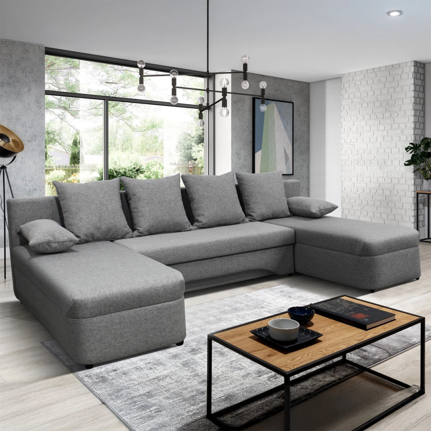 Universelle, ausklappbare U‑förmige Eck-Sitzgarnitur mit Stauraum ALMEIDA, grau