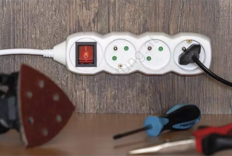 • Verlängerungskabel mit Steckdosen und Schalter.