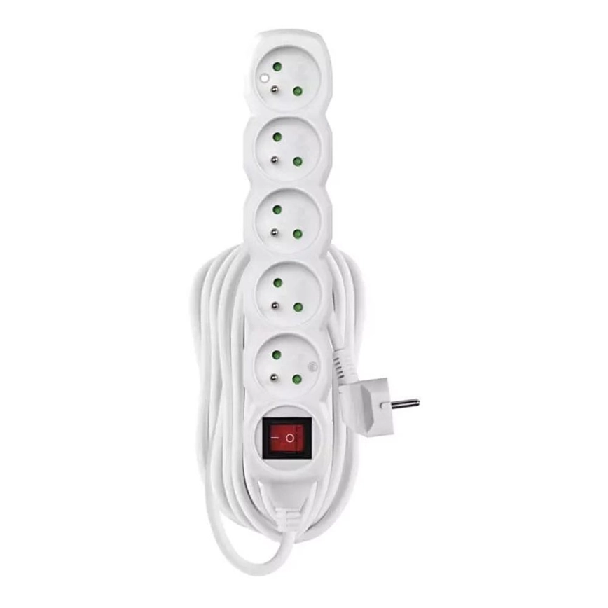 Verlängerungskabel mit Schalter 5-fach 10 m Weiß