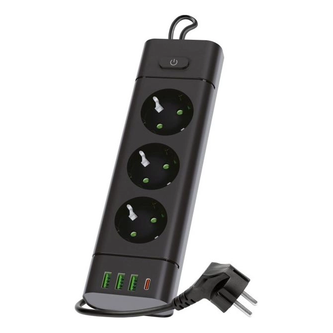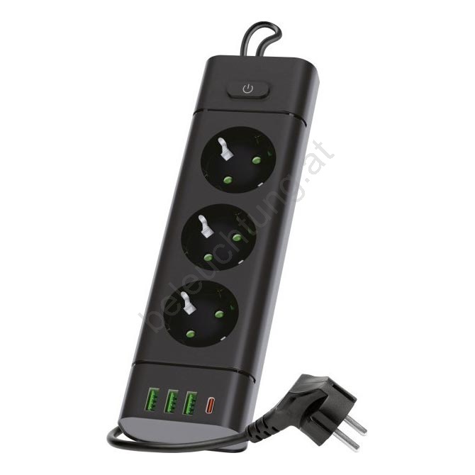 • Anzahl der Anschlüsse: 3 × 230 V, 3 × USB‑A und 1 × USB‑C.