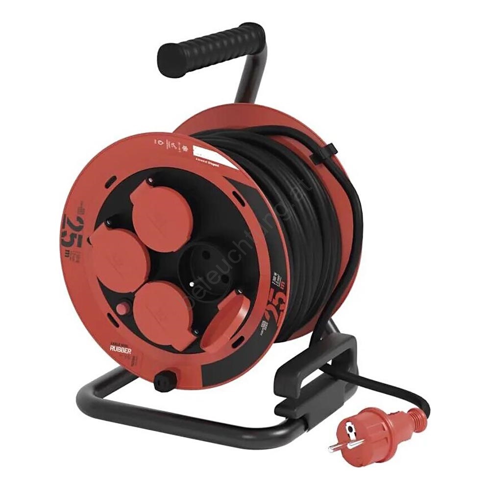 Verlängerungskabeltrommel mit 4 Steckdosen 25m IP44 rot