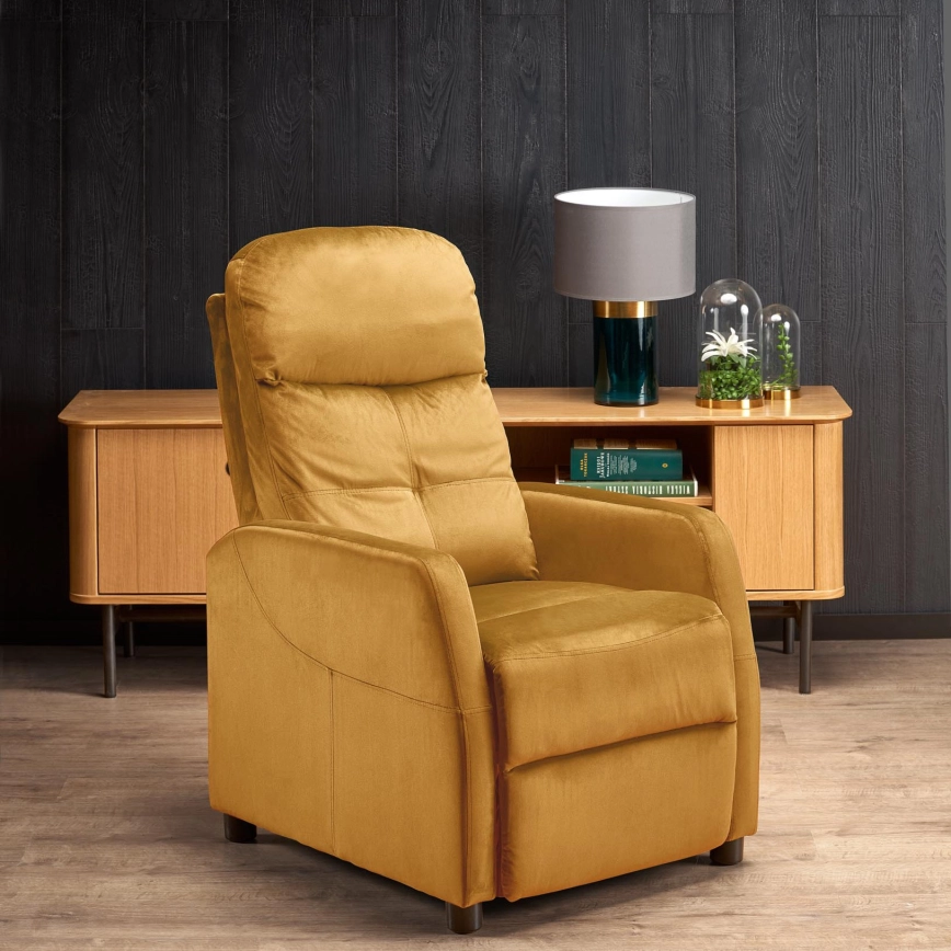 • Komfortabler, verstellbarer Samt-Sessel.