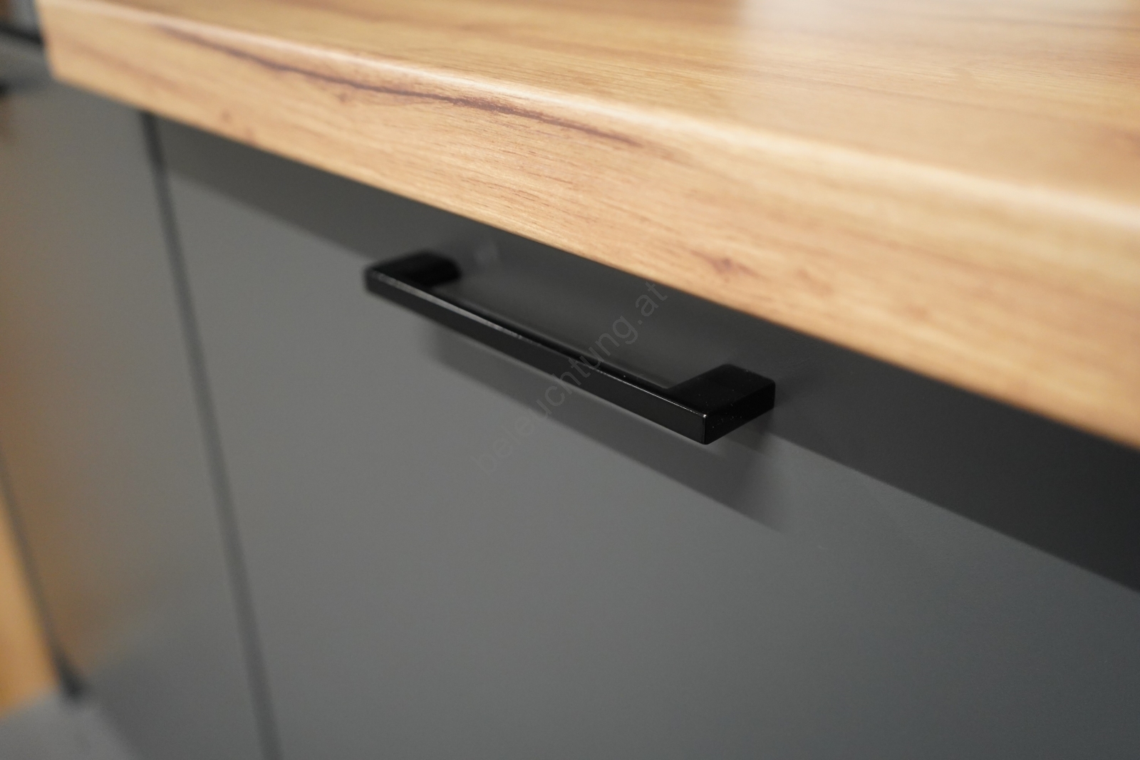 • Die Fronten der Oberschränke und des Unterschranks sind matt ausgeführt.