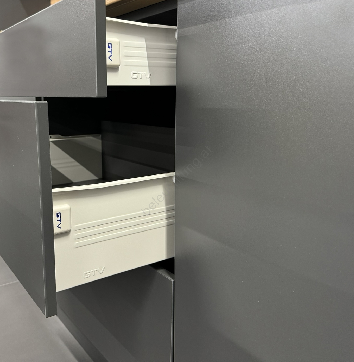 • Oberschränke sind mit Gasdruckfedern ausgestattet, in den Schubladen sind hochwertige eingekapselte Metall führungen.