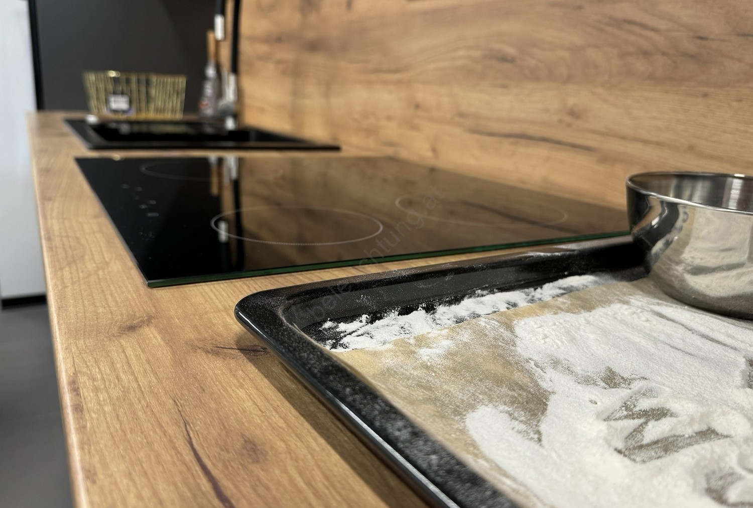 • Küchenzeile MARINA 180 cm Eiche Craft / Hochglanz-Schwarz